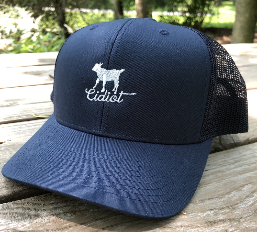 Wear with pride the official Cidiot trucker cap — one size fits all, sporting the iconic baby goat logo of the podcast. Price includes shipping within continental U.S.